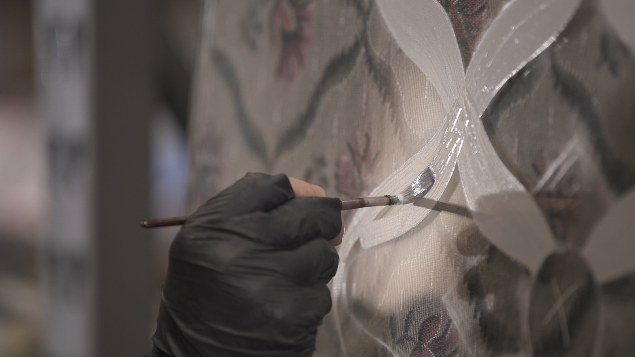 Reinterpretation of historical pieces from their textile archive.